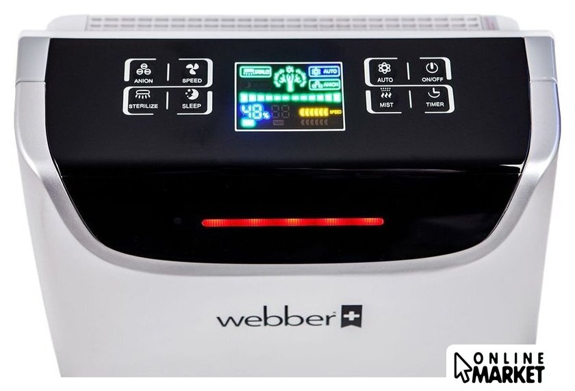 Индикация | времени работы до выключения, замены фильтров, скорости работы вентилятора, качества воздуха, уровня воды, уровня выхода пара |