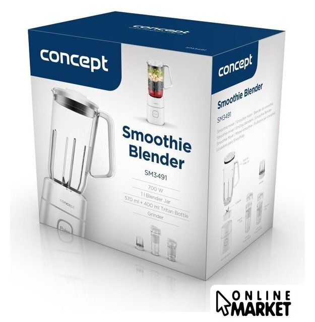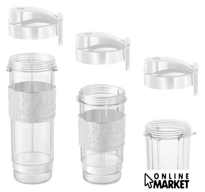 | Комплектация | основная база, литровая чаша из тритана с ручкой, дорожная бутылка 570 мл, дорожная бутылка 400 мл, мельничка для специй/кофе, два вида ножей, крышки для бутылок с питьевым клапаном и силиконовым грипом, инструкция |
