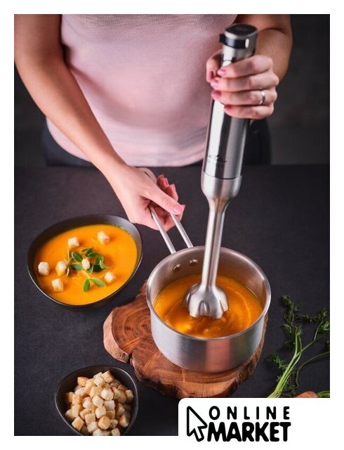 | Комплектация | погружная часть из нержавеющей стали, венчик для взбивания, измельчитель с зубчатым лезвием, рабочий контейнер 600 мл, инструкция |