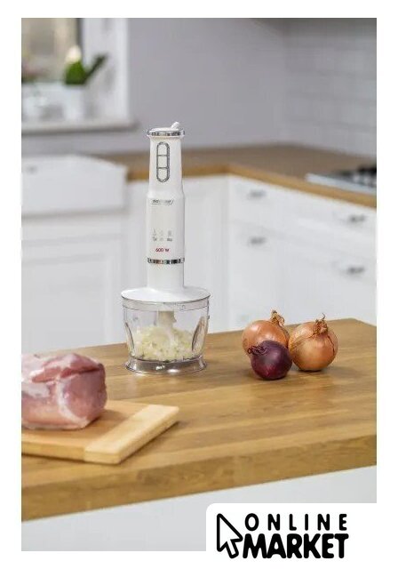 | Комплектация | погружная ножка из нержавеющей стали, контейнер 500 мл с ножом из нержавеющей стали, дополнительный контейнер 500 мл, венчик для взбивания, крепление для подвешивания |