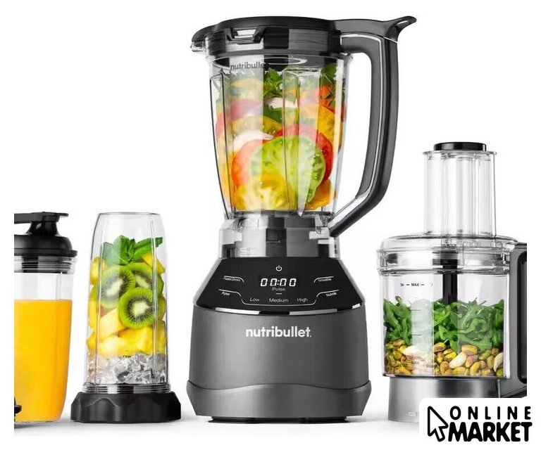 | Комплектация | 1.8L кувшин, миска комбайна, 2 стакана для персонального использования, 2 крышки для стаканов, ножи из нержавеющей стали, диск для нарезки/шинки, насадка для теста, насадка для измельчения |