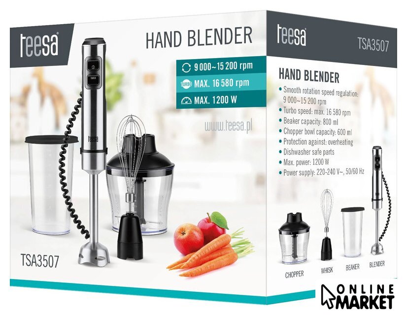 | Комплектация | ручной блендер, измельчитель, венчик, кувшин. |