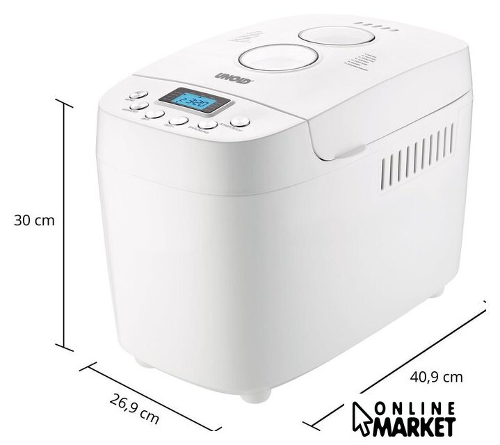 | Перечень режимов работы | обычный хлеб, безглютеновый хлеб, варенье/конфитюр, кекс, тесто для пасты, йогурт, индивидуальная программа, ускоренная выпечка, выбор корочки, выбор размера хлеба, замес теста, выпечка, подогрев, программа для смешивания, программа для ферментации |