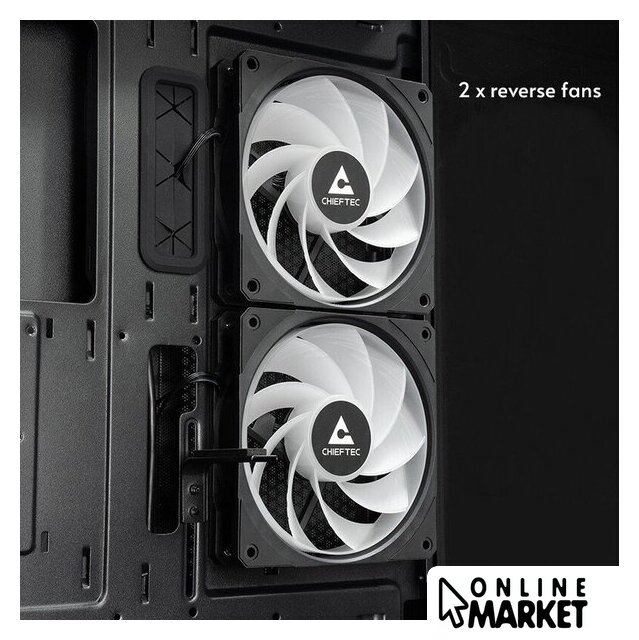| Расположение вентиляторов | сверху:3x120 мм или 2x140 мм, сзади:1x120 мм, на кожухе БП:3x120 мм, на M/B стороне:2x120 мм, установлены, на M/B стороне:2x120 мм, сзади:1x120 мм |
