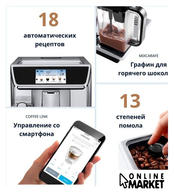 Программы приготовления | эспрессо, лунго, американо, капучино, латте макиато, эспрессо макиато, флэт уайт, латте, доппио, горячее молоко, горячий шоколад, холодный кофе |