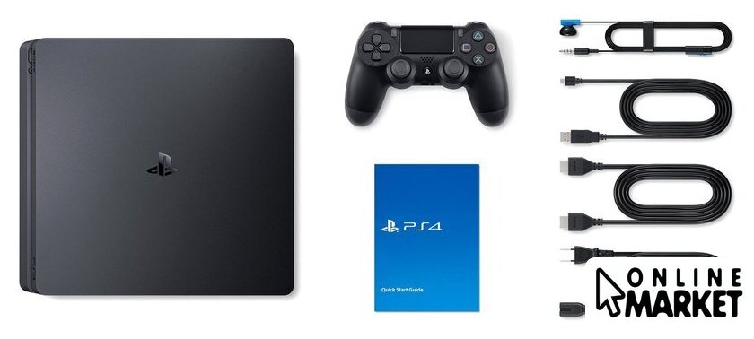 | Полная комплектация | • Консоль PlayStation 4 Slim• Беспроводной геймпад Dual Shock 4• Моногарнитура• Кабель питания• HDMI-кабель• USB-кабельВертикальная подставка в комплект не входит! |