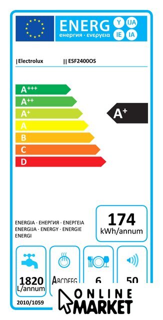 загрузка на 6 комплектов посуды, 6 программ