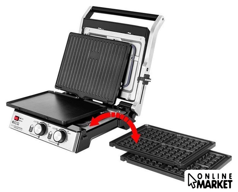 | Комплектация | рифленые и плоские съемные панели; комплект панелей для приготовления вафель; съемный поддон для сбора жира |