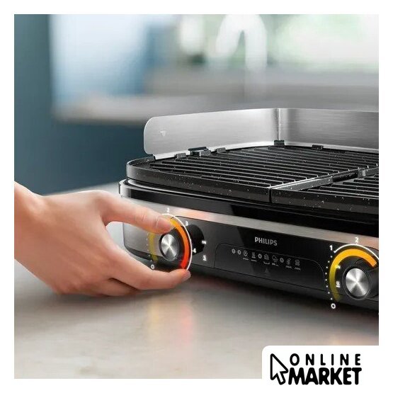 | Комплектация | съемные рабочие плиты; лоток для сбора жира; защитная крышка от разбрызгивания; инструкция |