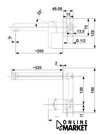 | Длина (вылет) излива | 200 мм |