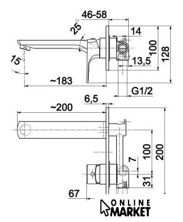 | Длина (вылет) излива | 183 мм |
