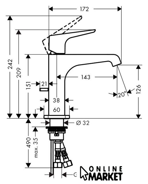| Длина (вылет) излива | 143 мм |