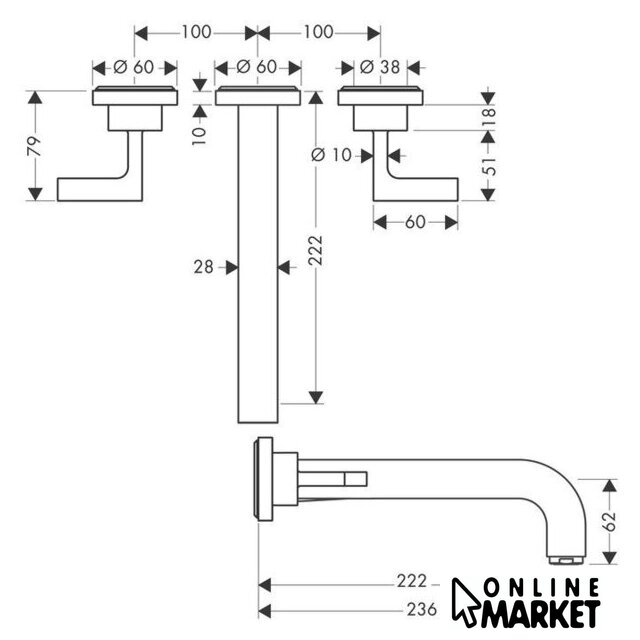 | Длина (вылет) излива | 222 мм |