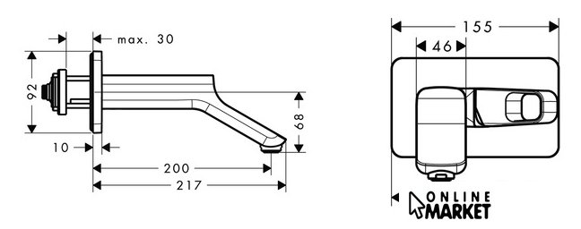 | Длина (вылет) излива | 200 мм |