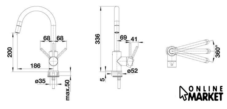 Поворотный излив | 360 ° |