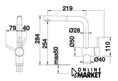 | Длина (вылет) излива | 219 мм |