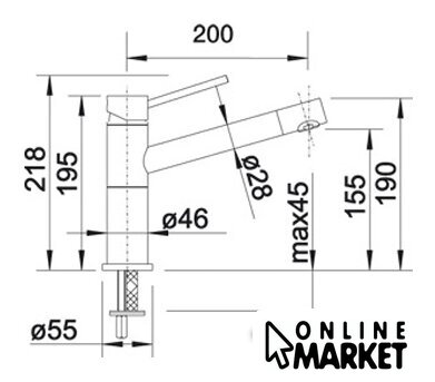 | Длина (вылет) излива | 200 мм |
