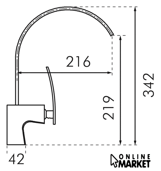 | Длина (вылет) излива | 216 мм |