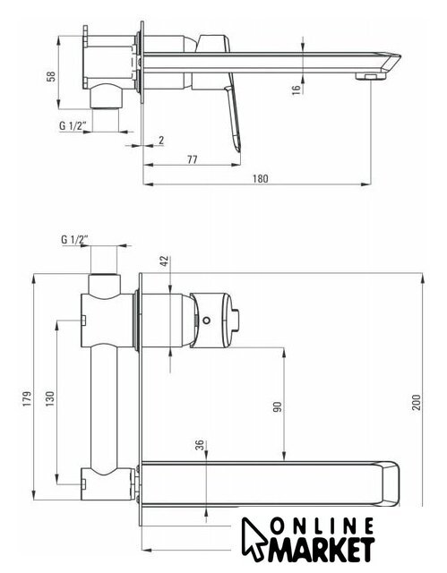 | Длина (вылет) излива | 180 мм |