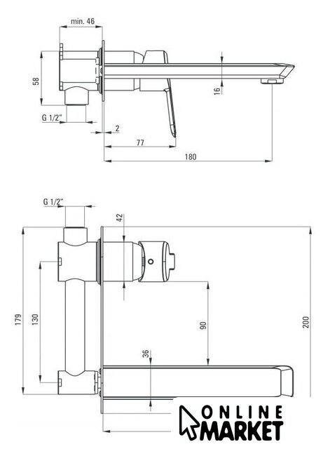 | Длина (вылет) излива | 180 мм |