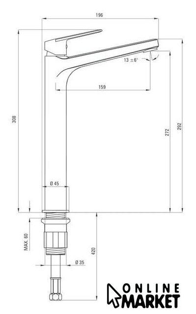 | Длина (вылет) излива | 159 мм |