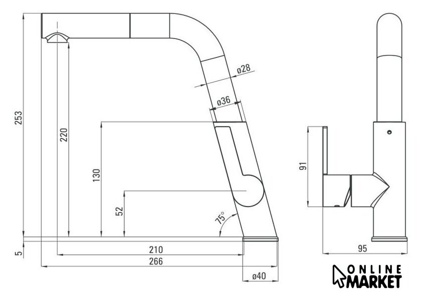 | Выдвижной/гибкий излив | с аэратором |