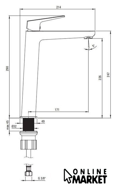 | Высота излива | 226 мм |