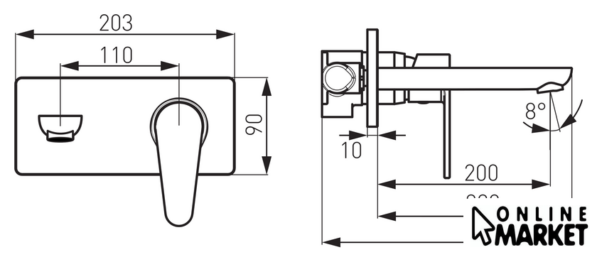 | Длина (вылет) излива | 210 мм |