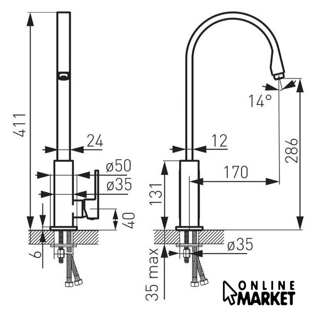 | Высота излива | 286 мм |