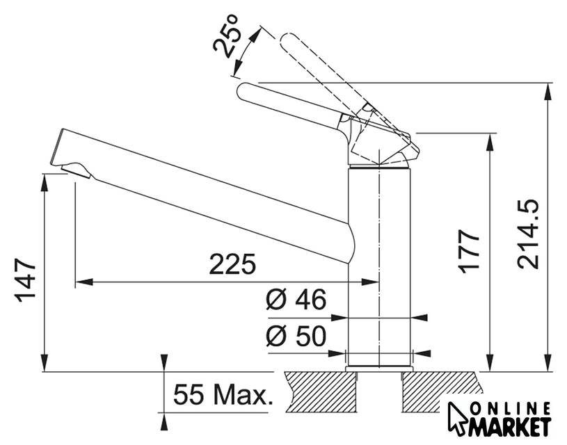 Длина (вылет) излива | 225 мм |