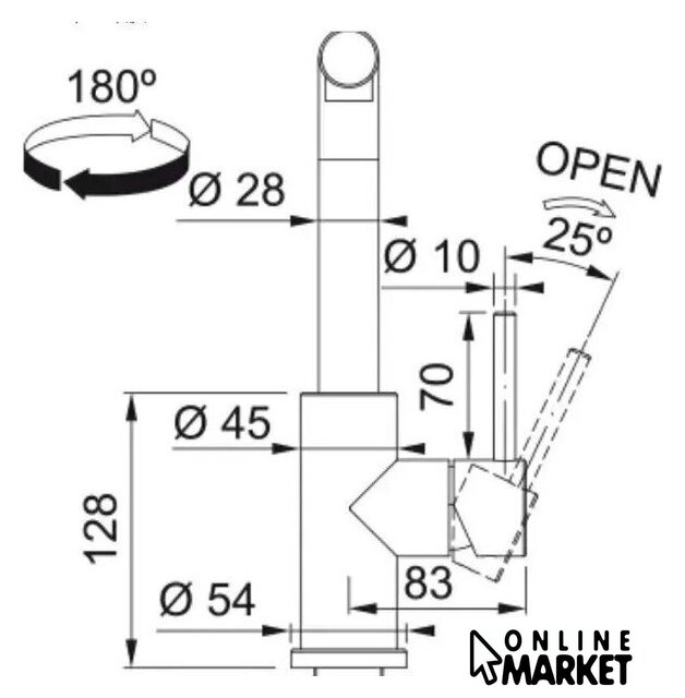 Поворотный излив | 180 ° |