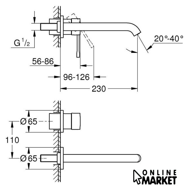 | Длина (вылет) излива | 230 мм |