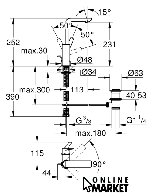 | Поворотный излив | 90 ° |