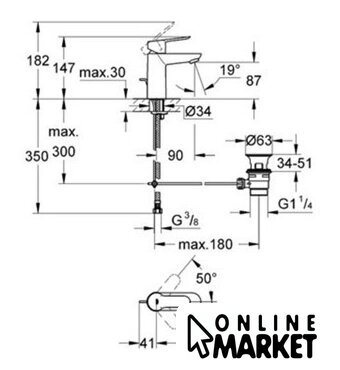 | Длина (вылет) излива | 90 мм |