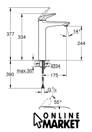 | Длина (вылет) излива | 175 мм |