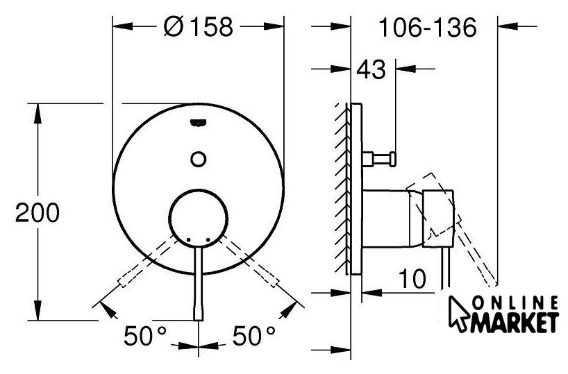 смеситель, монтаж на стену/скрытый