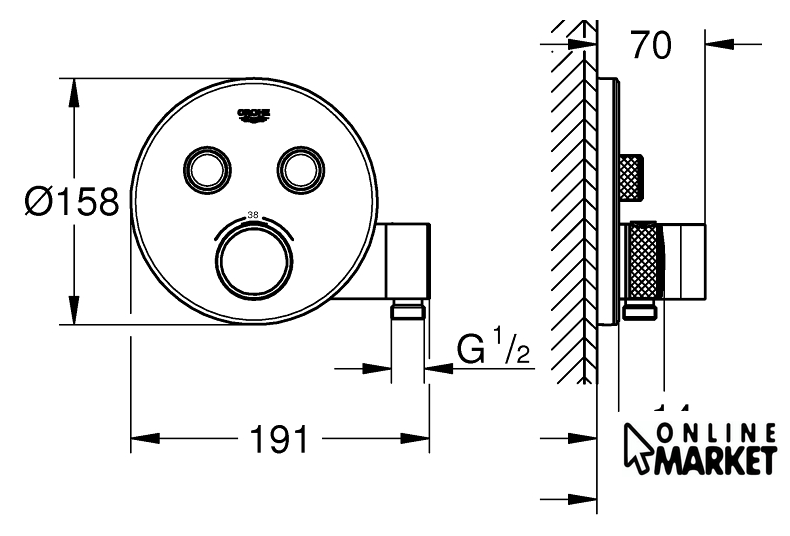 | Стопор безопасной температуры | 38 ° (ограничитель до 43° в комплекте) |