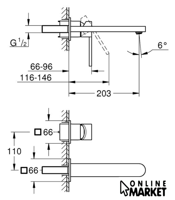 | Длина (вылет) излива | 203 мм |