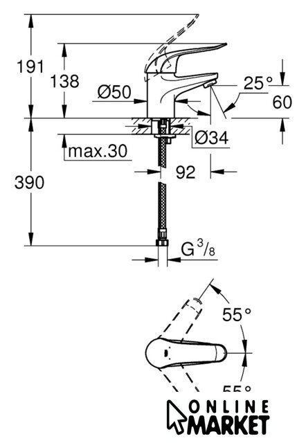| Длина (вылет) излива | 92 мм |