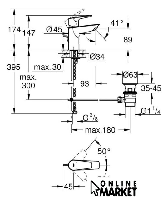 | Длина (вылет) излива | 93 мм |