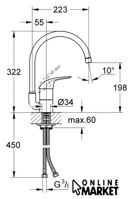 Длина (вылет) излива | 223 мм |