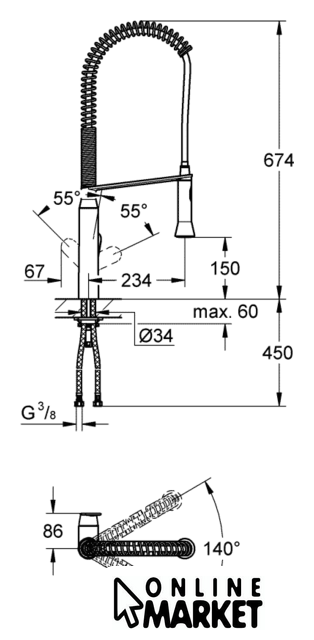 Поворотный излив | 140 ° |