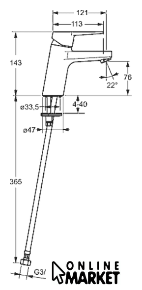| Длина (вылет) излива | 121 мм |