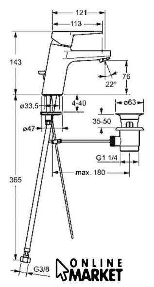 | Длина (вылет) излива | 121 мм |