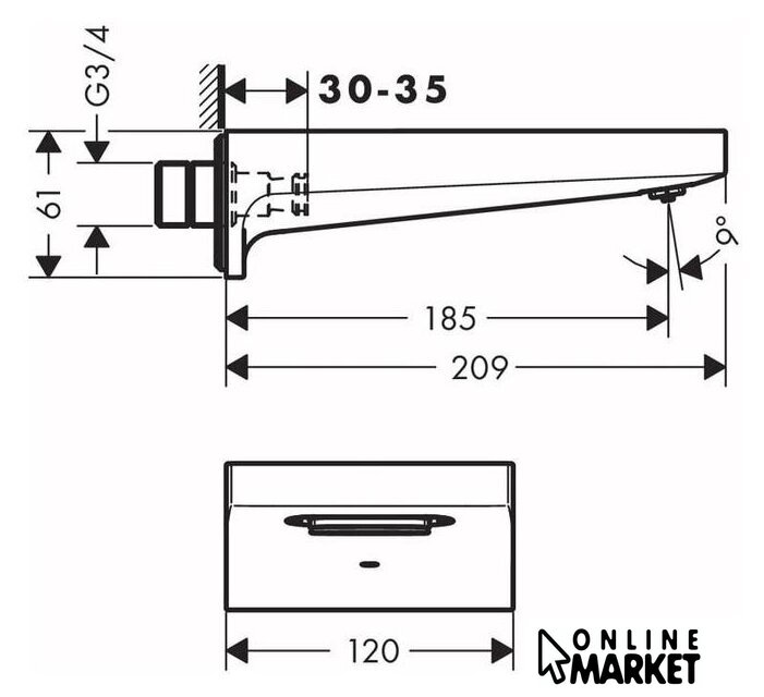 Длина (вылет) излива | 185 мм |