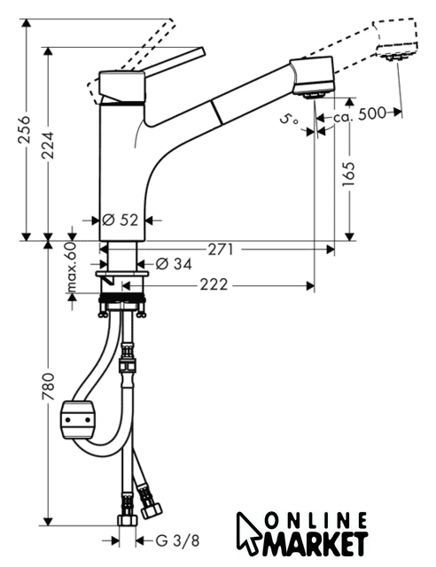 | Поворотный излив | 150 ° |
