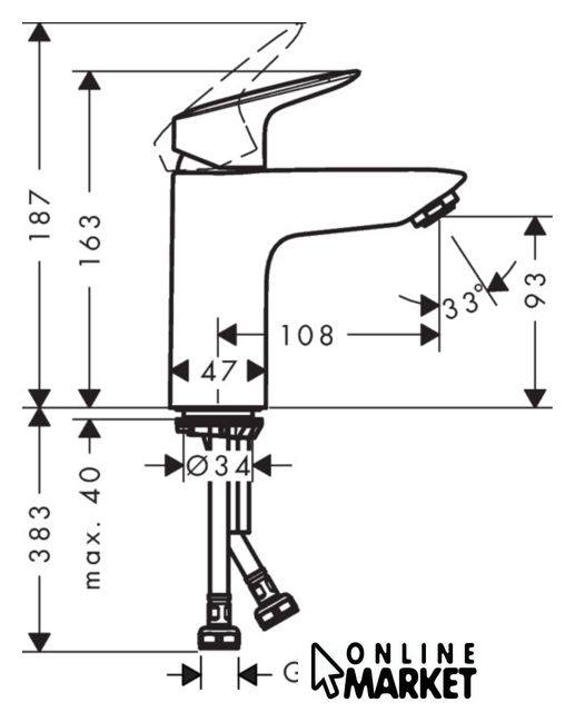 Длина (вылет) излива | 108 мм |