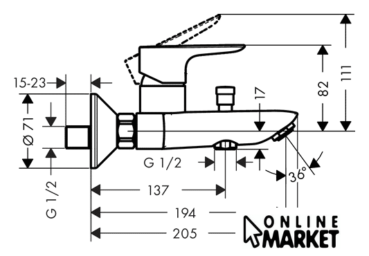 Длина (вылет) излива | 194 мм |