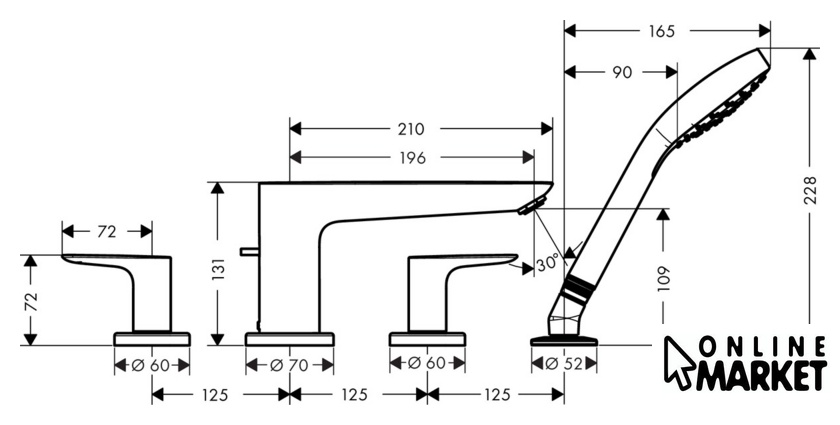 Ширина | 70 мм (смеситель) |
