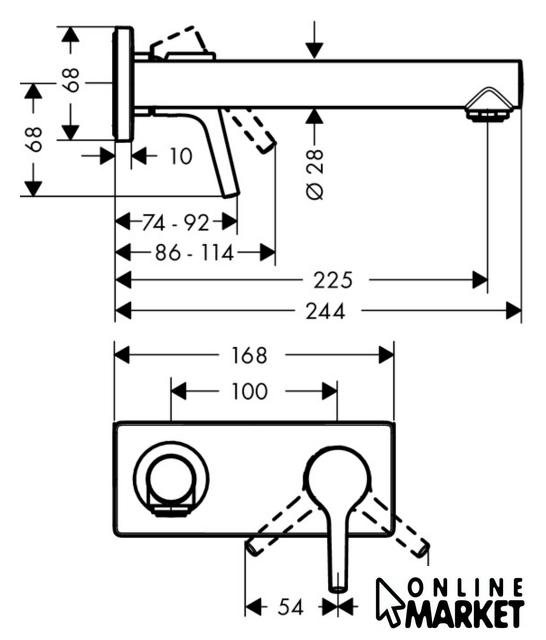 Длина (вылет) излива | 225 мм |
